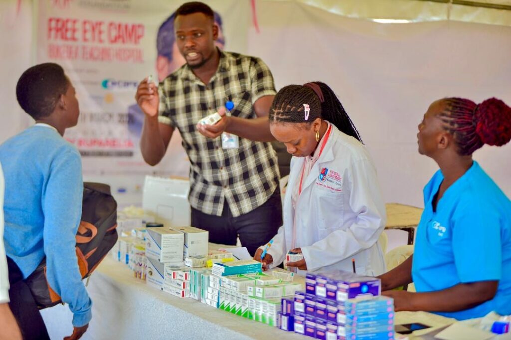 Speaking during the second day of the camp, Dr Lawrence Muganga, Vice Chancellor of Victoria University Kampala, described the initiative as both life-changing for patients and an opportunity for students to gain hands-on medical experience. He noted that students from the university were supporting doctors by dispensing glasses, conducting check-ups, and assisting in surgical procedures under supervision.